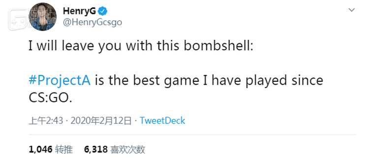 仅通过媒体披露的信息并不能了解一个游戏的全貌。不久前,CS:GO知名解说HenryG在官方邀请下,率先体验了《Valorant》。事后,这位资深CS玩家在Twitter上给予了游戏极高的评价,认为其是继CS:GO之后他玩过的最好的游戏。