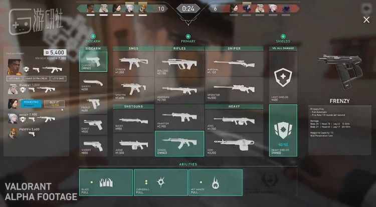 不过,《Valorant》又不仅仅只有战术射击。目前拳头官方公布的8个游戏角色,每个角色都具有自己特有的技能。在每轮游戏中,玩家只能操作一个角色,每个角色自己拥有四个特有技能。玩家一上来直接获得角色的一个技能,随着击杀和胜利的提高,玩家还会陆续通过累计的金钱买到另外两个技能。