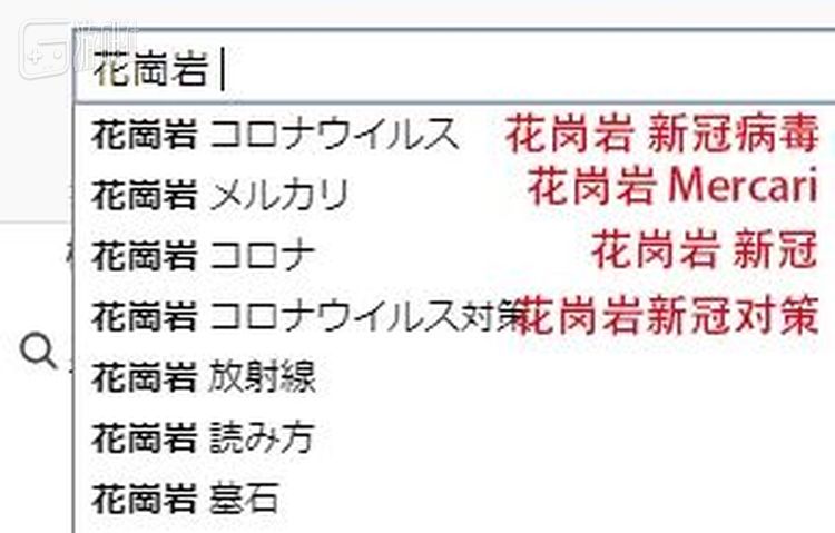 先看日本最主流的搜索引擎吧,雅虎搜索的联想里,花岗岩有关的词条已经全数沦陷: