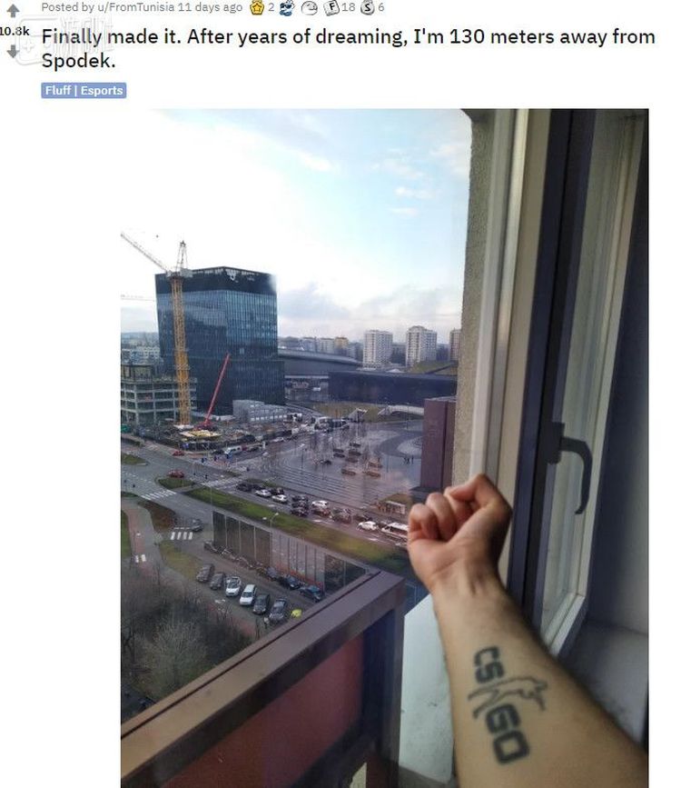 来自突尼斯的CS:GO狂热爱好者Mouadh,为即将到来的IEM卡托维兹CS:GO比赛感到兴奋,他在Reddit上发帖,“我做到了!经过多年对梦想的追寻,我现在距离Spodek只有130米!”Spodek Arena是IEM举办CS:GO常用场地,可容纳1万多人同时观赛,也是许多CS:GO玩家的朝圣之地。