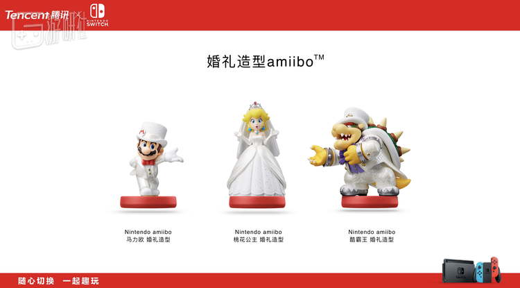 《超级马力欧 奥德赛》支持使用amiibo。在游戏中使用婚礼造型amiibo,就可以获得游戏内的服装,还可以在旅途中获得帮助,得到“力量之月”所在位置的提示。三款婚礼造型amiibo已正式发售,如想了解更多详细信息,请点击:http://www.nintendoswitch.com.cn/amiibo