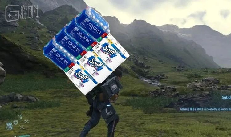 惊叹这幅情景与《死亡搁浅》描绘的世界何其相似的同时,跨越山海的“连接”也形成了。Rdddit上,有人为武汉快递员送货的照片配上了《死亡搁浅》的UI。