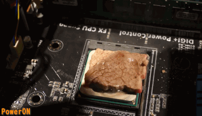 作为人类最原始的料理之一,烤肉也是探索电脑菜的排头兵。CPU的金属表面就像做铁板烧的铁板,时刻等待着与食材亲密接触时发出嘶嘶作响的煎烤声。