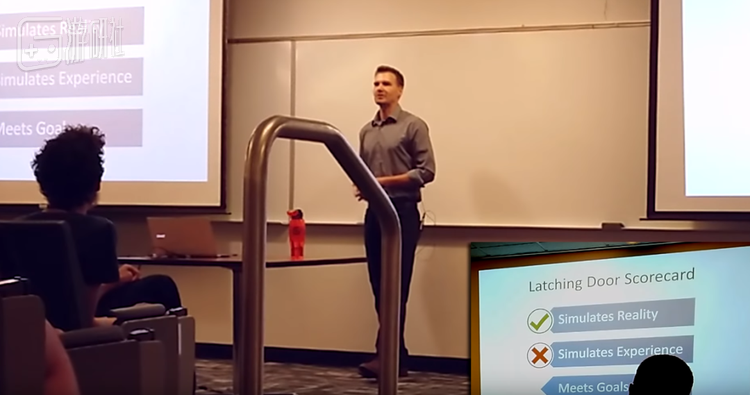 这是一个挺困难的问题。去年在一场教学交流会上,Valve员工Kerry Davids介绍了他是怎么给“HLVR”(也就是现在正式发售的《半衰期:Alyx》)做门的。经历了几次迭代之后,他做了一个感觉还不错的门把手机制,玩家伸手拉一下把手,就能把门解锁打开。