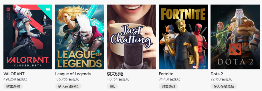 比如我现在随便点进Twitch,《VALORANT》的观众数量稳占平台第一把交椅,甚至比后四名加起来还要多。如果只以人数为指标,这个游戏目前开局天胡程度起码也和2016年的《守望先锋》站到同一个起跑线了。