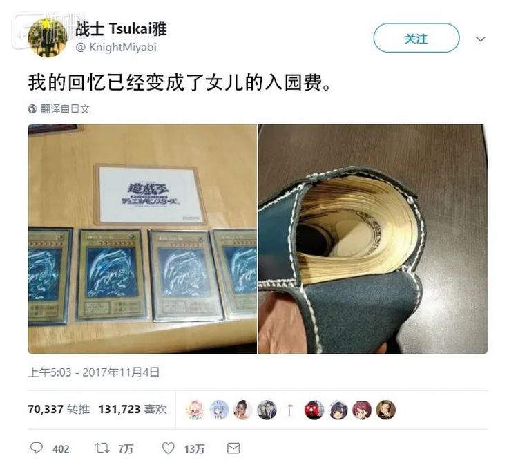 先前就有一位日本父亲为了筹集女儿上学需要的高额学费,从自己当年的收藏中翻出4张游戏王稀有卡“青眼白龙”,一转手就为女儿凑齐了高达149万日元(当时合人民币8万以上)的学费。