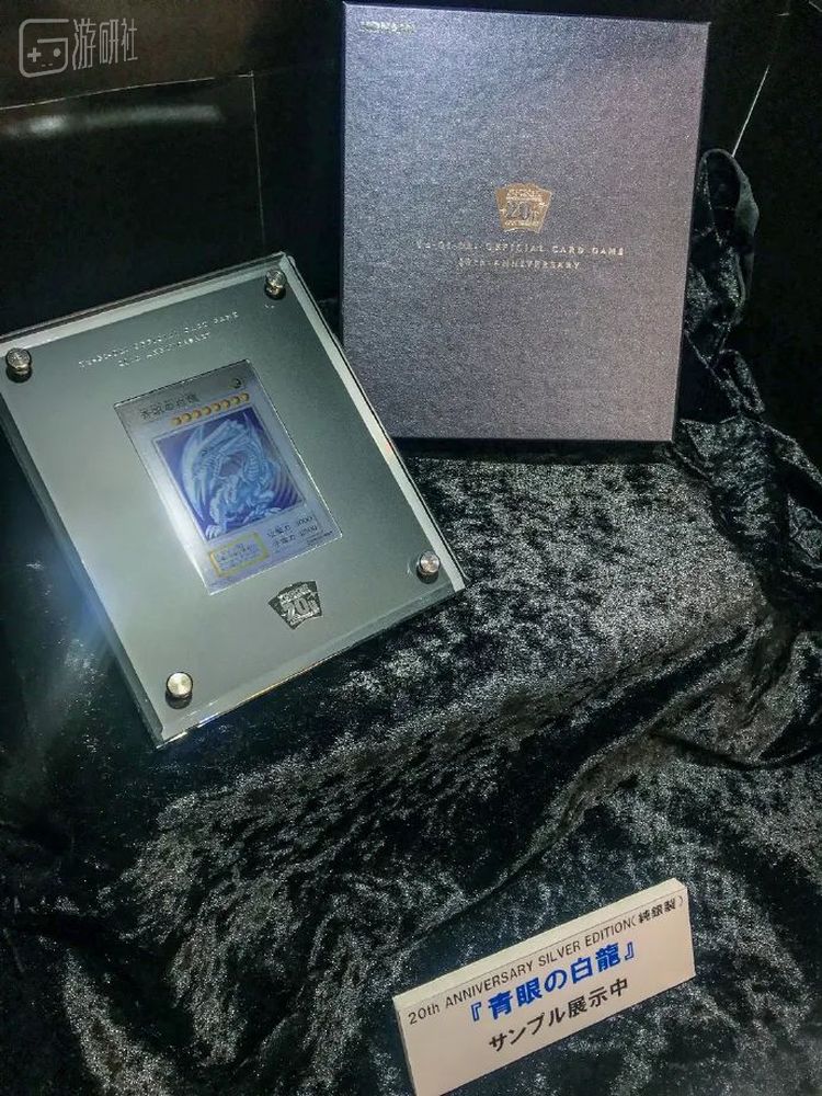 在2018年的东京电玩展上,游研社曾受邀前往日本KONAMI的东京总部,那里有一个《游戏王》卡牌游戏中心,里面陈列着青眼白龙的雕塑,以及这张卡的20周年纯银纪念版,十分珍贵。