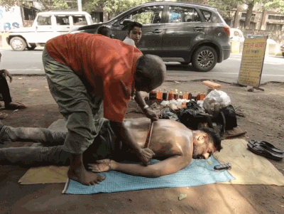 在印度刮痧被融入到街头按摩体系中,与理发、正骨、按摩结合,形成了独特的保健一条龙服务。