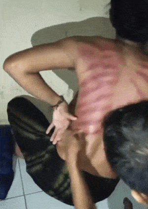 这里的人会使用各种各样的工具来进行刮痧,有时用金属刮刀,有时只有一根木棍,厉害的可能还会用上凿子。效果如何不清楚,力道绝对够劲。