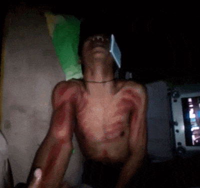 民间的刮痧很多没有那么舒适的环境,有的在昏暗的屋里,有的直接在马路边施工。被刮者席地而坐,头部下垂,有时还需要有几个大汉摁着。