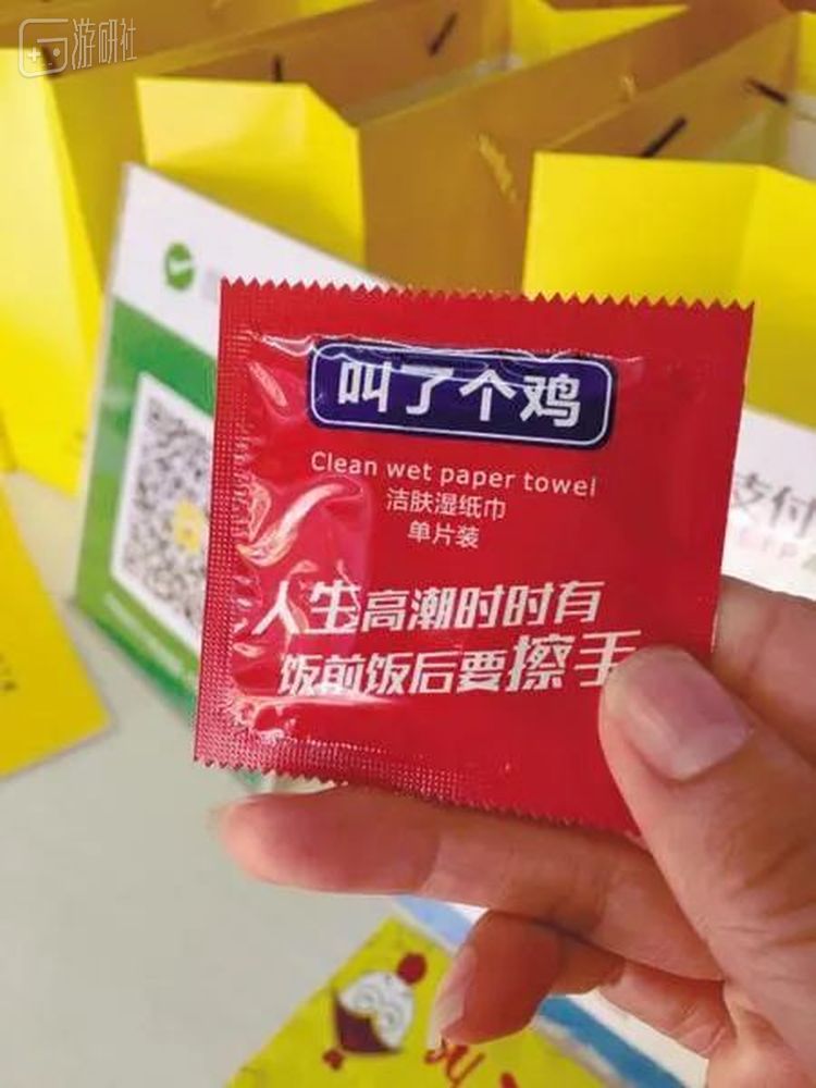 2016年,出现了一个有名的外卖品牌“叫了个鸡”。这也一个有着互联网基因的品牌,全部包装都是奔着吸睛去的。