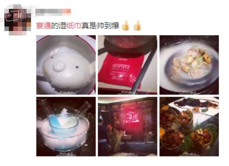 就这样到了2016年左右,宴遇靠着独特的风格发展成了全厦门人气最旺的餐厅,还在很多城市开了分店。宴遇的湿巾成了他们的标志性产品,不少人慕名来到宴遇,就是为了去和套套合个影。