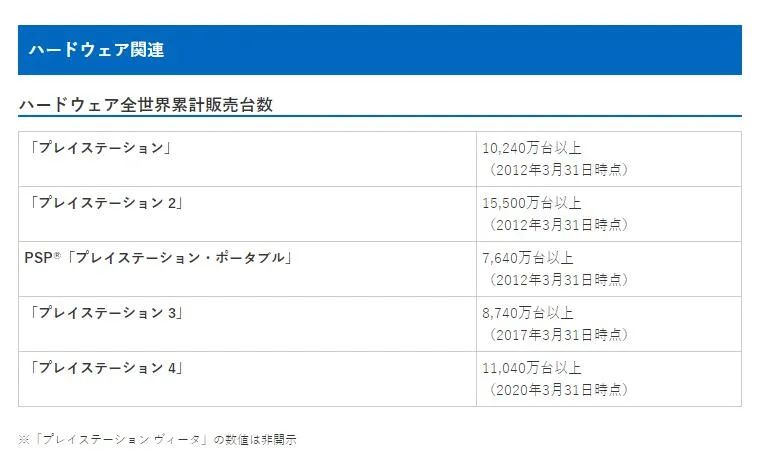 最近SIE日本的官网上放出了历代游戏机的销量,从PS1、PSP到PS4,最少的销量也超过了8千万台,而PSV连拥有姓名的资格都没有。和其他主机一比PSV就像是篮球世家里的小矮人一样,早早被踢出了家族微信群。
