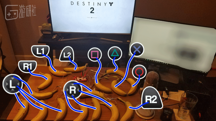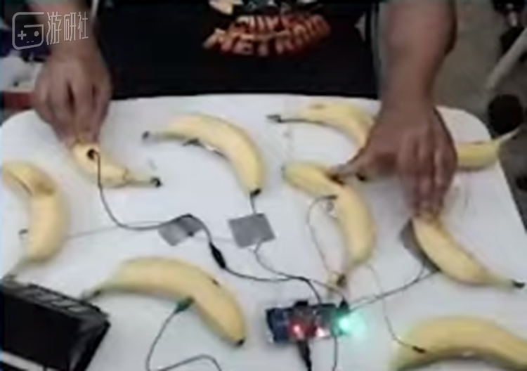 用香蕉操纵角色的原理并不复杂。大多数人在学生时代都做过“土豆电池”的实验,“香蕉手柄”也是一样,只不过是把香蕉接入控制器,使得每根香蕉对应手柄上的一个键。