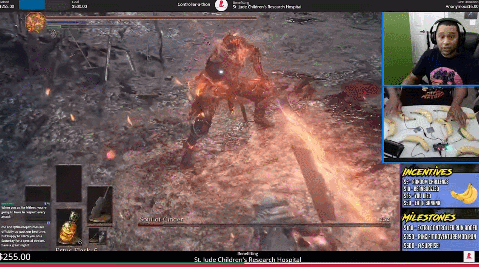 就在昨天,Super Louis 64上传了他的最新一期视频——用香蕉击败《黑暗之魂3》的最终BOSS薪王化身。