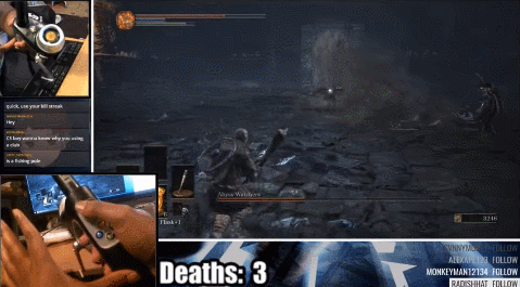 从跳舞毯到健身环,从《吉他英雄》的吉他到《生化危机4》的电锯……这么说吧,如果有“用最多种控制器通关《黑暗之魂3》”这项世界纪录,那么记录的保持者就必然是这位Super Louis 64。
