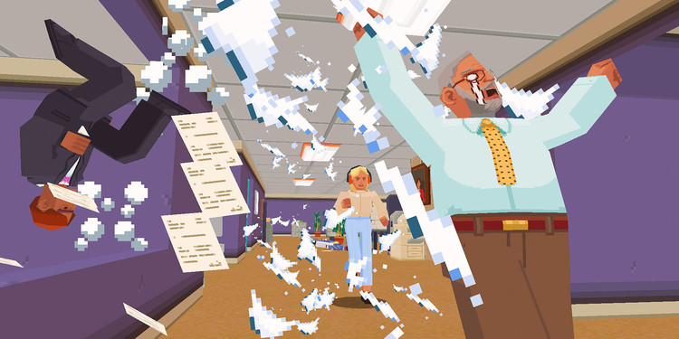 《Say No! More》是故事主导的游戏,玩家跟随主角的脚步过五关斩六将,横眉冷对刻薄的同事、主管和老板,发现更多的磁带,解锁更多说No的姿势,一点点摧毁这个邪恶的公司。
