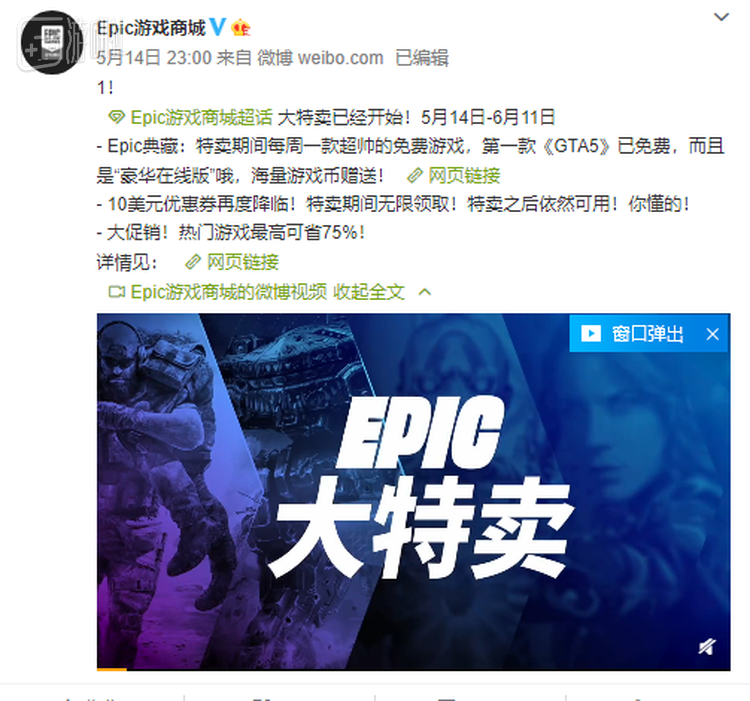 这个从5月14日持续到6月18日的平台活动中,玩家每周都可以获得一个往年大作,最重磅的自然是GTA5,还有《文明6》《方舟:生存进化》以及《无主之地:帅杰克合集》合集等。