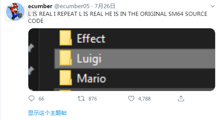 至此,玩家们靠着泄露的数据,终于在《超级马里奥64》里见到了“隐藏角色”路易基。