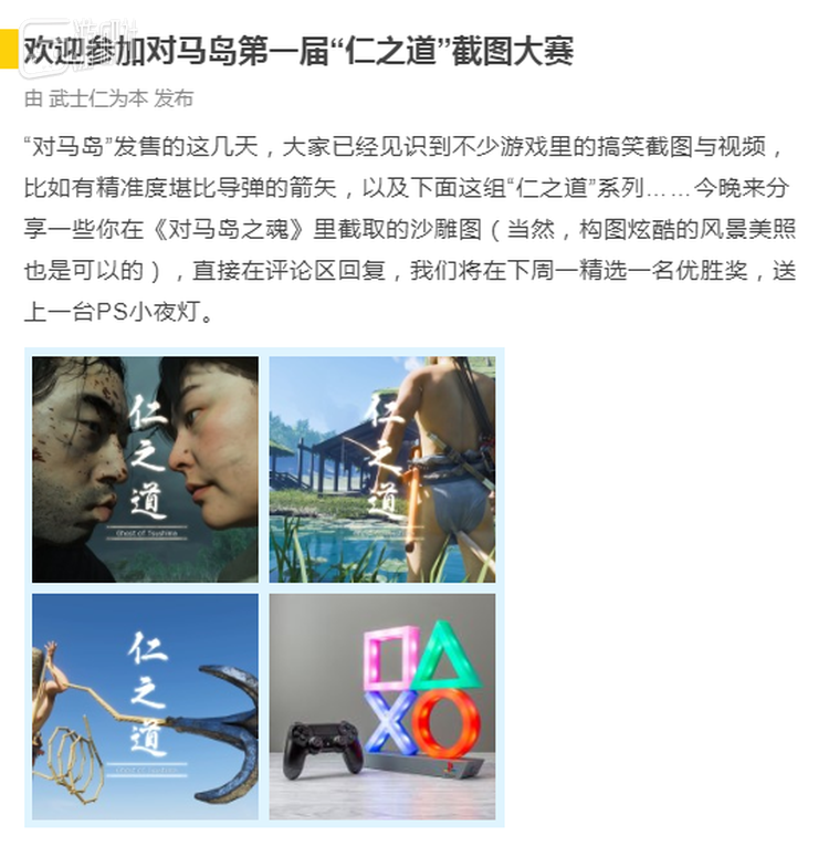 如果你也有搞笑的“仁之道”沙雕图,或是精心截下的风景照片,记得来游研社APP参与对马岛“仁之道”比赛,我们会精选一位优胜奖,送上一台PlayStation官方小夜灯周边。传送门在此。