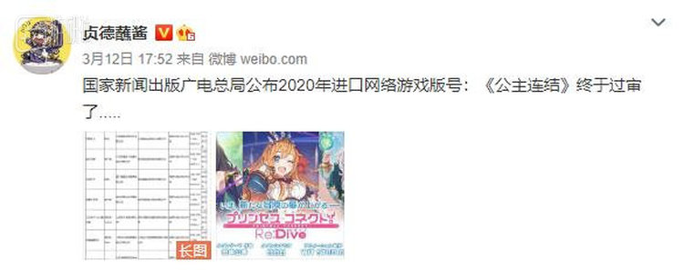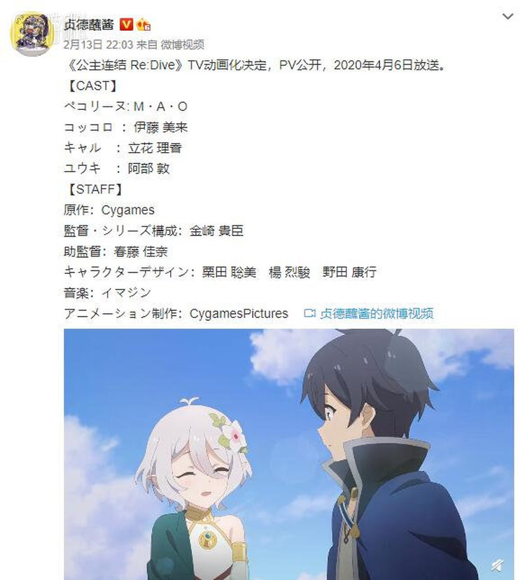2020年2月13日,《公主连结》宣布了TV动画定档4月番,一个月后等待多年的国服《公主连结》版号过审。