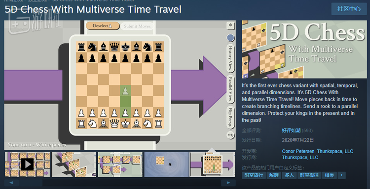 近期上线Steam的《多元宇宙时间旅行的5D国际象棋》(5D Chess with Multiverse Time Travel,以下简称5D国际象棋),正如游戏的名称一样,是能够让棋子完成时间旅行、开辟平行宇宙的国际象棋。