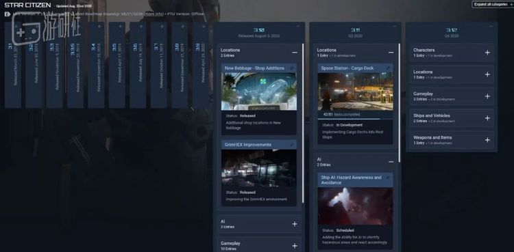 在一般玩家眼里,这个路线图已经足够详、足够规整、充满现代感。这也是一部分玩家对《星际公民》的开发进度充满信心的一个原因——虽然游戏总在跳票,但是通过路线图你可以知道,开发团队并没有闲着。