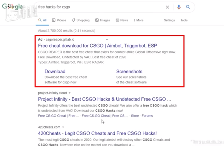 为了让作弊玩家用到自己的外挂,他煞费苦心,不仅免费更新假外挂软件,还自掏了腰包保证外挂被作弊者看到——ScriptKi会定期付费给Google,确保这些动歪脑筋的家伙在搜索“Free hacks for CS:GO”(CS:GO免费外挂)时,自己的软件能出现在搜索结果的前列。