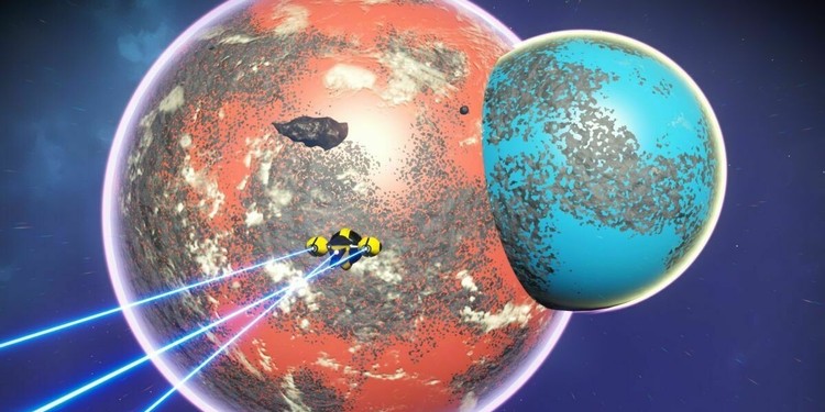 在Reddit《无人深空》板块里,每天都有玩家在分享者自己发现的新的活体飞船、新的星球风景和奇奇怪怪的外星生物们,直到一位名叫pineapplenate的玩家抢走了论坛所有的注意力:他遇到了两颗黏在一起的孪生星球。