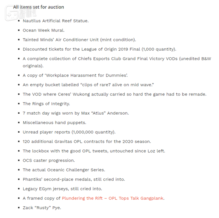 听起来这是个绝对有意义的活动,放在今天也是媒体们口中“游戏不止是游戏”的典范,不过最近,决定撤出澳洲的拳头官方来了这样一波“人走茶凉”的操作。拳头把这个放在海底四年的,快被玩家们忘记的雕像被拖了出来,准备拍卖来弥补一部分OPL的亏损。