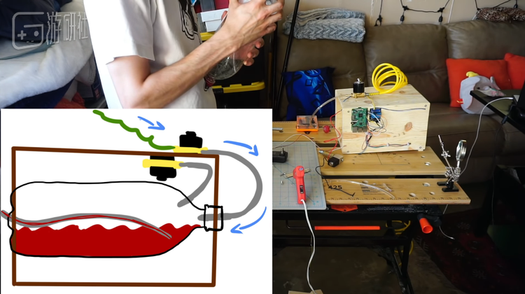 在Youtube上一个名叫Big Secret Builds的频道,一个名为Alex的大胡子玩家利用一瓶人造血浆制作了一个传感器,只要玩家在《黑暗之魂3》中遭到挨打,血液飞溅的效果就会在他面前还原出来。