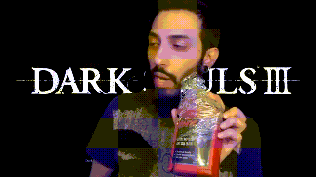 在视频最开始画面,Alex站在《黑暗之魂3》的开始界面前,拿着一瓶人造血浆给观众们介绍他的挑战。在这一整个视频里,很难的有机会像这样看到他干净的脸。