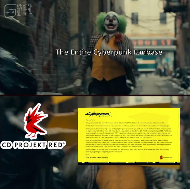 10月12日,CDPR的日本本地化团队澄清了当时流传的关于2077可能再次延期的谣言,并且用一种古怪的方式进行了确认: