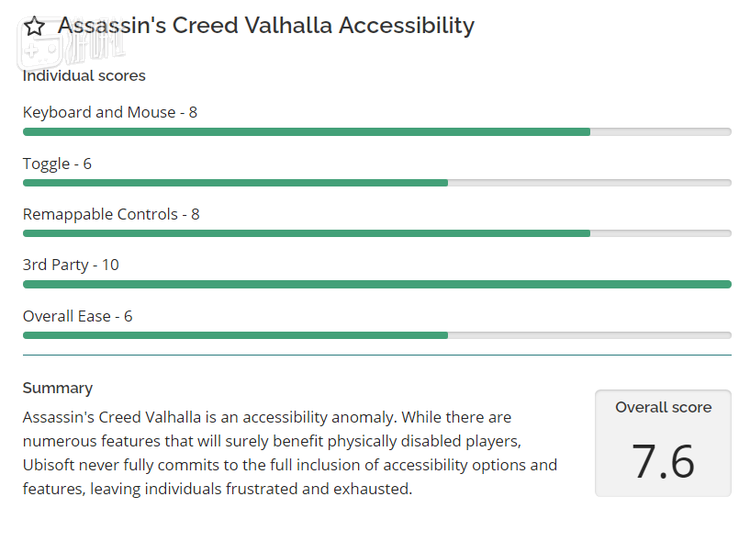 Courtney Craven是著名面向残障玩家群体的游戏媒体“Can I Play That”(以下简称CIPT)的创始人,CIPT最近对《刺客信条:英灵殿》的测评也刚刚出炉,总体来说和其他游戏媒体给出的评分相去不远。