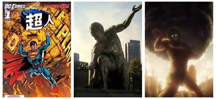到了今天的流行文化,这个经典的Pose经常被各类作品使用。比如新52版《超人》的封面、《超人大战蝙蝠侠》的大都会广场超人雕像,以及《进击的巨人》巨人化艾伦托起石头的造型,都是致敬阿特拉斯的典型例子。
