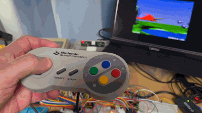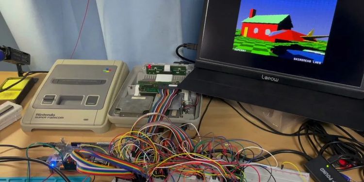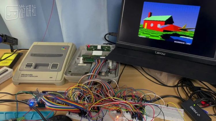 他先买了一台标准的SFC主机和一张便宜的卡带,将卡带的内存移除并通过线缆接到开发电路板上,组成一个外置的电路。通过一套专用的编程语言,Ben Carter将这个外置电路变成了一个光线追踪器,带有3个50Mhz的核心,可以计算屏幕上每个像素的光线轨迹,他将其并命名为SuperRT。