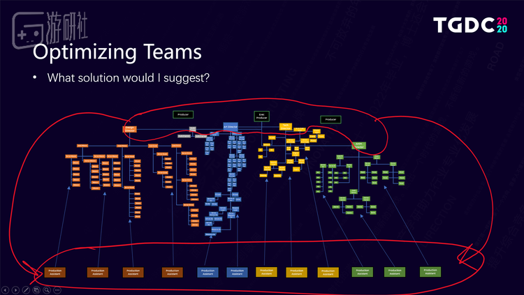 不过现在总制作人要和一个庞大的制作人团队进行沟通,每个制作人还要用助理制作人和分支团队进行沟通,越来越多的人为了同步信息而开各种小型会议,大家的信息反而非常分散。