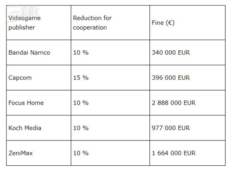 不过有意思的是,公告中的其他几家游戏公司,都选择积极配合调查,对于欧盟开出的罚单也照单全收,因此他们都受到了一定程度的罚金减免。