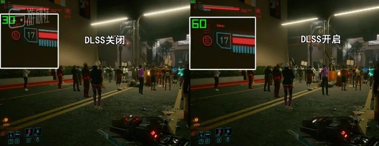 其实不仅仅是多人游戏,单机游戏的体验也能通过DLSS得到很大的提升。比如让无数硬件翻车的《赛博朋克2077》,在RTX显卡上基本都能得到不错的游戏体验,这和游戏支持DLSS有很大的关系。想要在这款游戏中体验稳定的60帧,开启DLSS几乎是必须的。