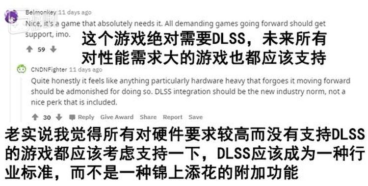 对于一款游戏来说,支持DLSS几乎可以看作一种游戏优化手段,是提升游戏帧数最方便也最快捷的一种方式。因此有的玩家表示,所有对性能需求较高的游戏都应该支持DLSS。