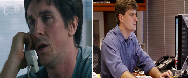 图左为《大空头》中克里斯蒂安·贝尔饰演的迈克尔·贝里,右图为其本人