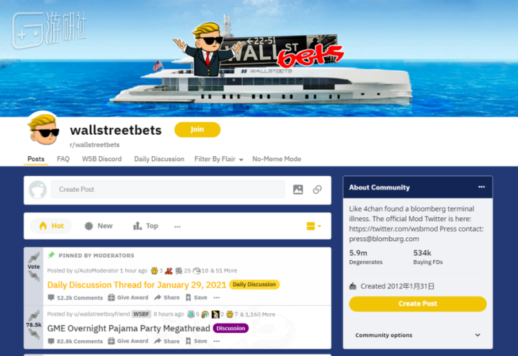 在美国论坛Reddit上有一个讨论股票的板块,名为WallStreetBets,简称WSB。