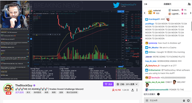 Twitch上的股票直播在近期也热门起来
