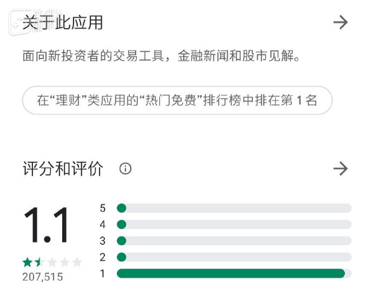 愤怒的散户们只能去应用市场给Robinhood打差评,这个最热门的投资产品转眼被一星刷爆。