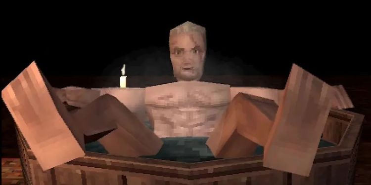 这次还原的场景,是来自游戏开头的经典场面——杰洛特和浴缸。与之前的作品相比,这个玩家相当熟悉的场景被马赛克化之后显然更具有震撼力,画面中,僵硬的杰洛特躺在木制浴缸里,丝毫看不出有泡澡的愉悦。