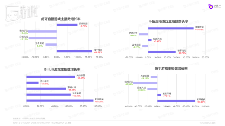 虎牙、斗鱼、B站、快手游戏主播增长率