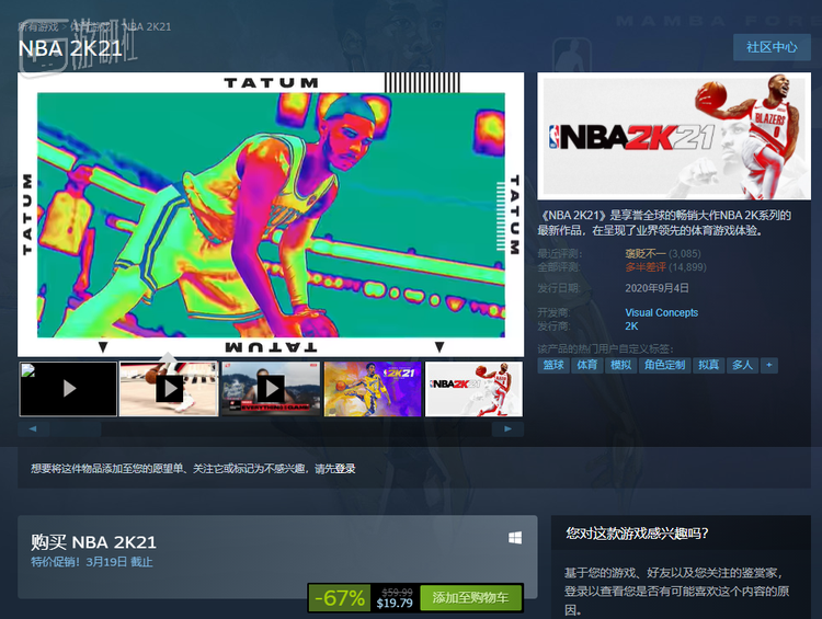 现实是残酷的,2020年九月发售的《NBA 2K21》最终并没有成为“配得上70美元”的作品,它的成品质量并不出彩,反而因为过高的售价早早收获了差评。游戏的售价也自发售以来一跌再跌,仅半年,就与70美元的远大目标相距甚远,让CEO的这段解释十分尴尬。