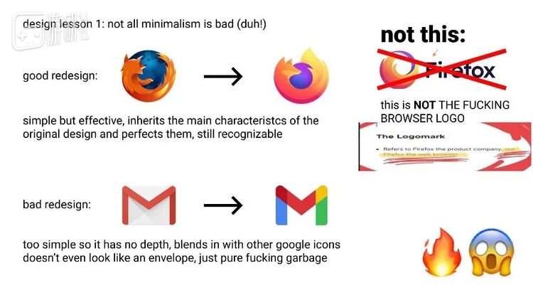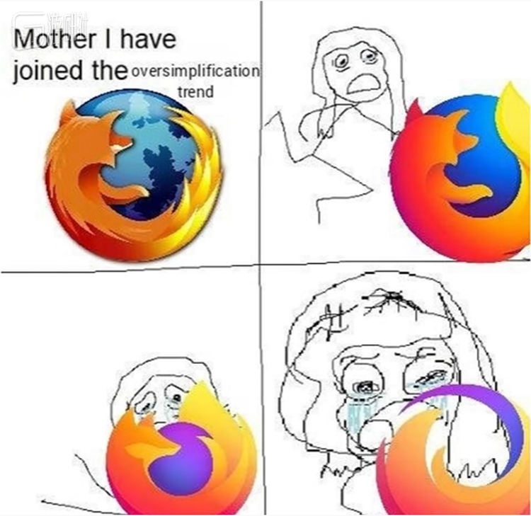一石激起千层浪。没过两天,关于火狐新LOGO的讨论大幅扩散,揶揄火狐新图标的梗图也源源不断,看得出来,一些网友似乎对新LOGO“杀死狐狸”的行为异常不满,纷纷表现出怀旧与抵制新LOGO的倾向。