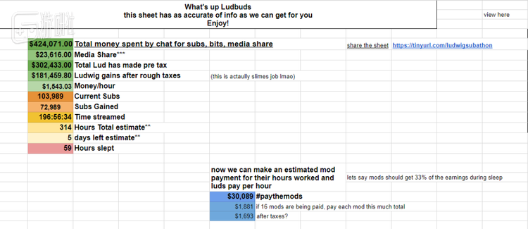 根据他们基于194个小时的数据所做出的最保守推测,路德维格至少要在超过300小时,也就是开播13天后,才能从直播中解脱。