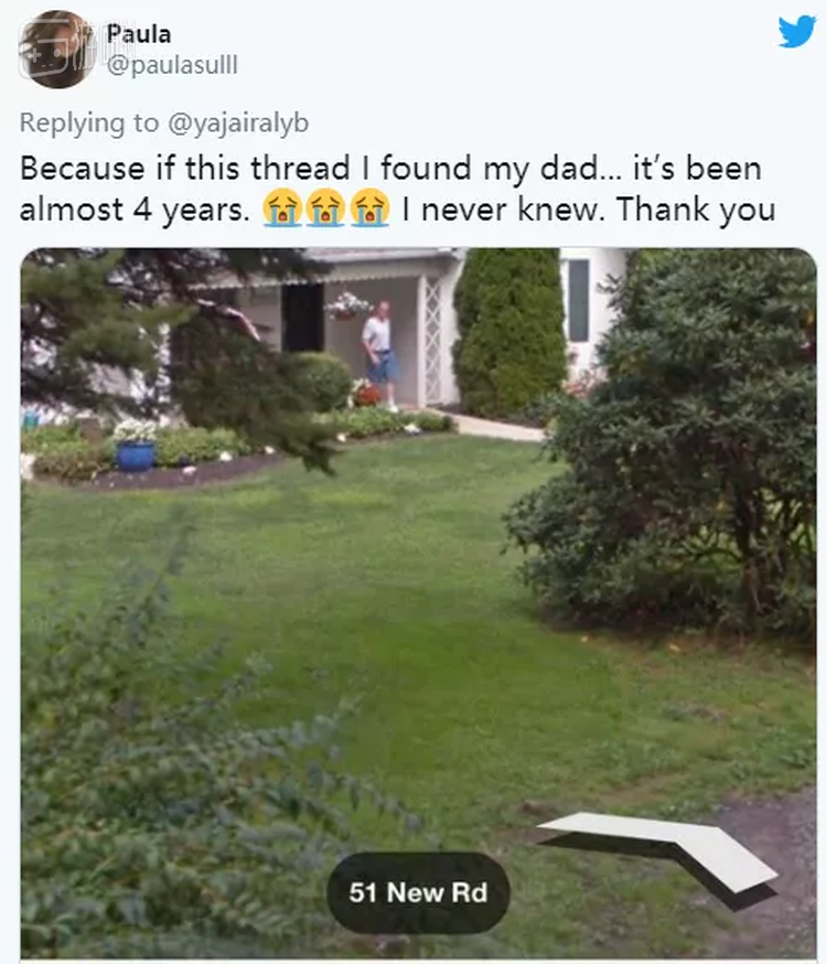 某天下午,莎莉文从学校返回宾州时顺手打开了谷歌的街景地图,却意外在地图上看到了去世多年的父亲: